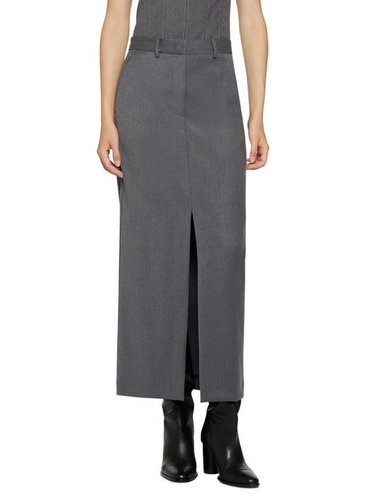 Simona Corsellini gonna lunga con spacco grigio