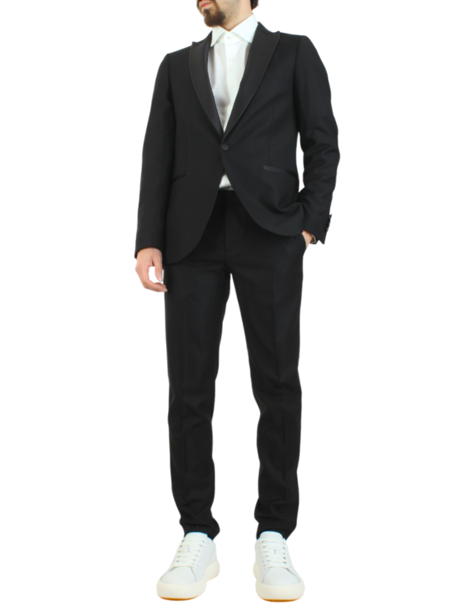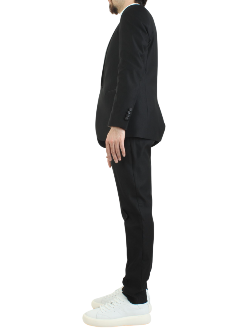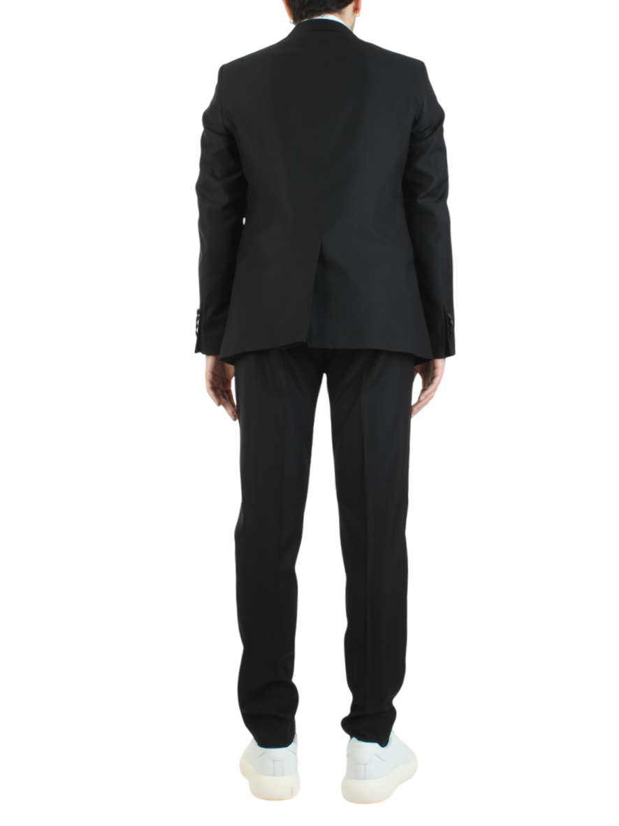 I pantaloni, dal taglio slim, sono progettati con tasche anteriori e tasche a filetto posteriori, fondendo praticità e stile in un unico capo. Questo abito è ideale per l'uomo moderno che desidera esprimere la propria personalità attraverso un'eleganza raffinata.