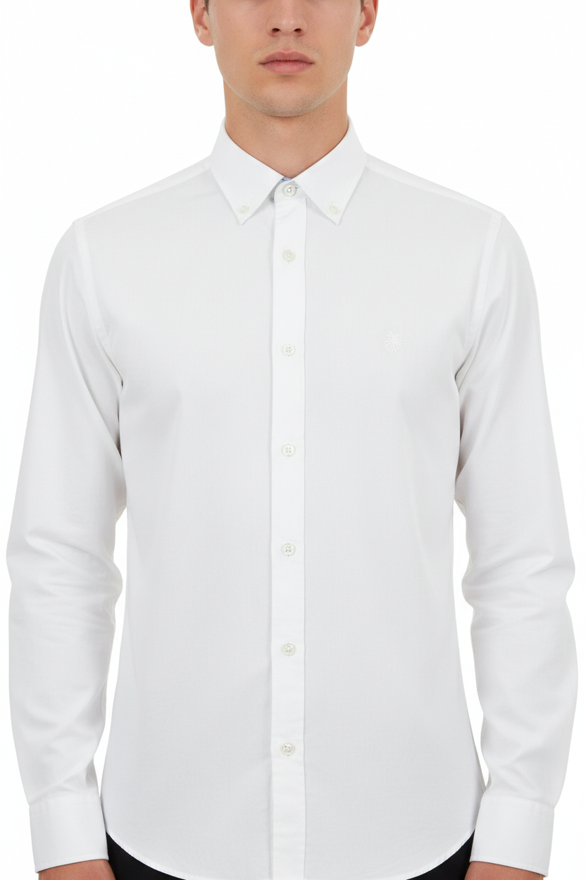 Questo modello a maniche lunghe è progettato con una vestibilità regolare, garantendo una silhouette impeccabile per ogni occasione. Il colletto all'italiana conferisce un tocco di raffinatezza, mentre i polsini con un bottone offrono praticità e un design curato nei minimi dettagli.