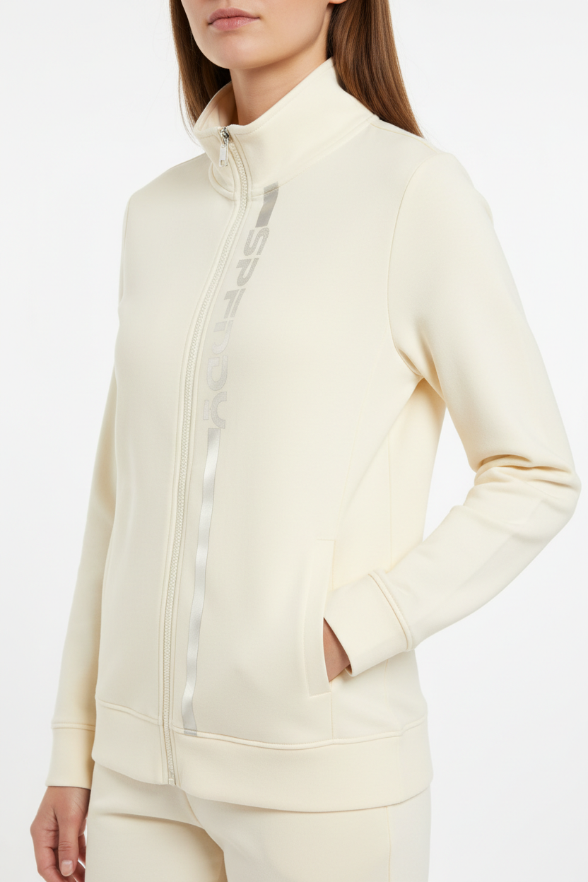 Dotata di due tasche pratiche, la felpa offre ampio spazio per riporre i tuoi oggetti essenziali. La chiusura con zip la rende facile da indossare e togliere, offrendo al contempo una vestibilità versatile.