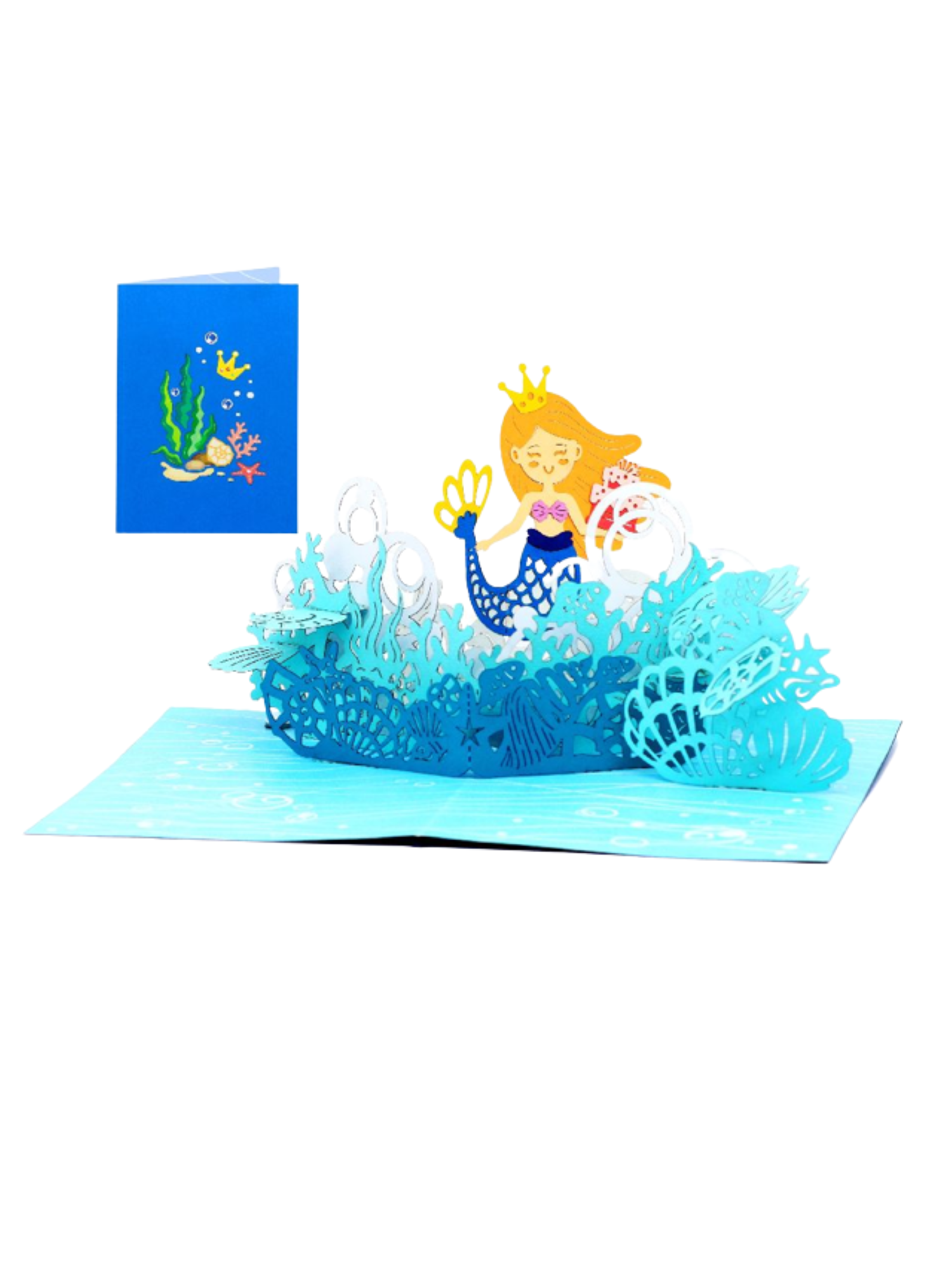 Scegliete il nostro biglietto di auguri pop-up con sirenetta per esprimere i vostri sentimenti in modo originale e indimenticabile.