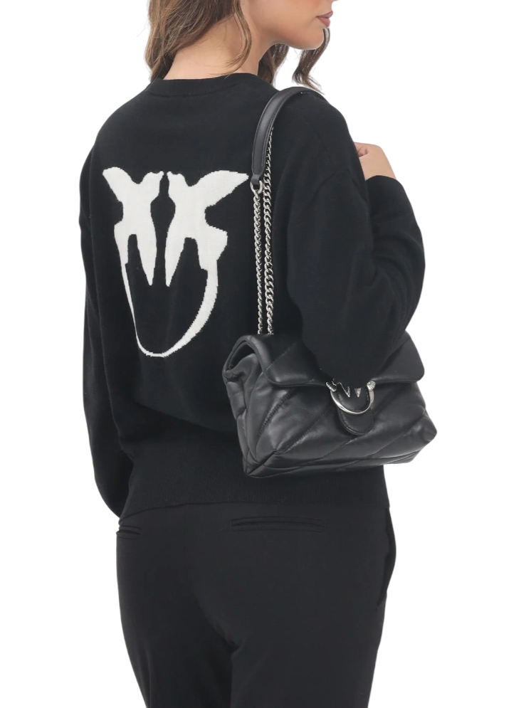 Il design presenta un logo Pinko jacquard sul davanti, conferendo un tocco di sofisticatezza, mentre il maxi logo Love Birds sul retro aggiunge un elemento di originalità. La composizione di alta qualità, con il 90% di lana e il 10% di cashmere, assicura non solo un aspetto elegante ma anche una sensazione di morbidezza al tatto.