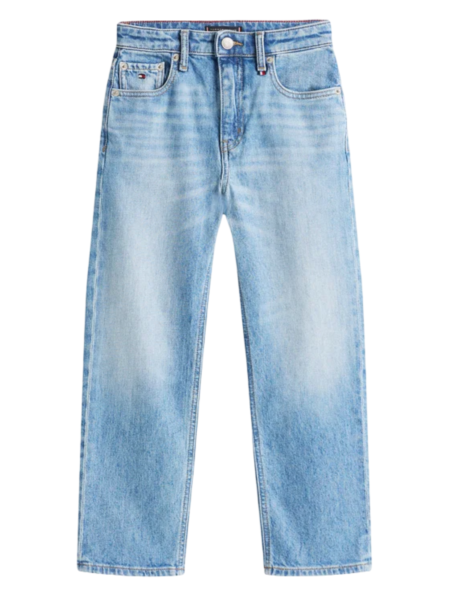 Presentiamo i jeans Tommy Hilfiger per bambini, un capo d’abbigliamento che unisce stile e comfort. Realizzati in denim di cotone leggermente stretch, questi jeans offrono un'elegante finitura effetto used che conferisce un aspetto moderno e alla moda.