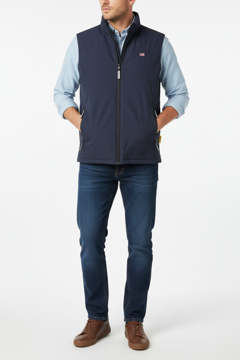 Scoprite il giubbotto smanicato della linea Norway 1963, un capo d'abbigliamento che unisce funzionalità e stile in un design sofisticato.