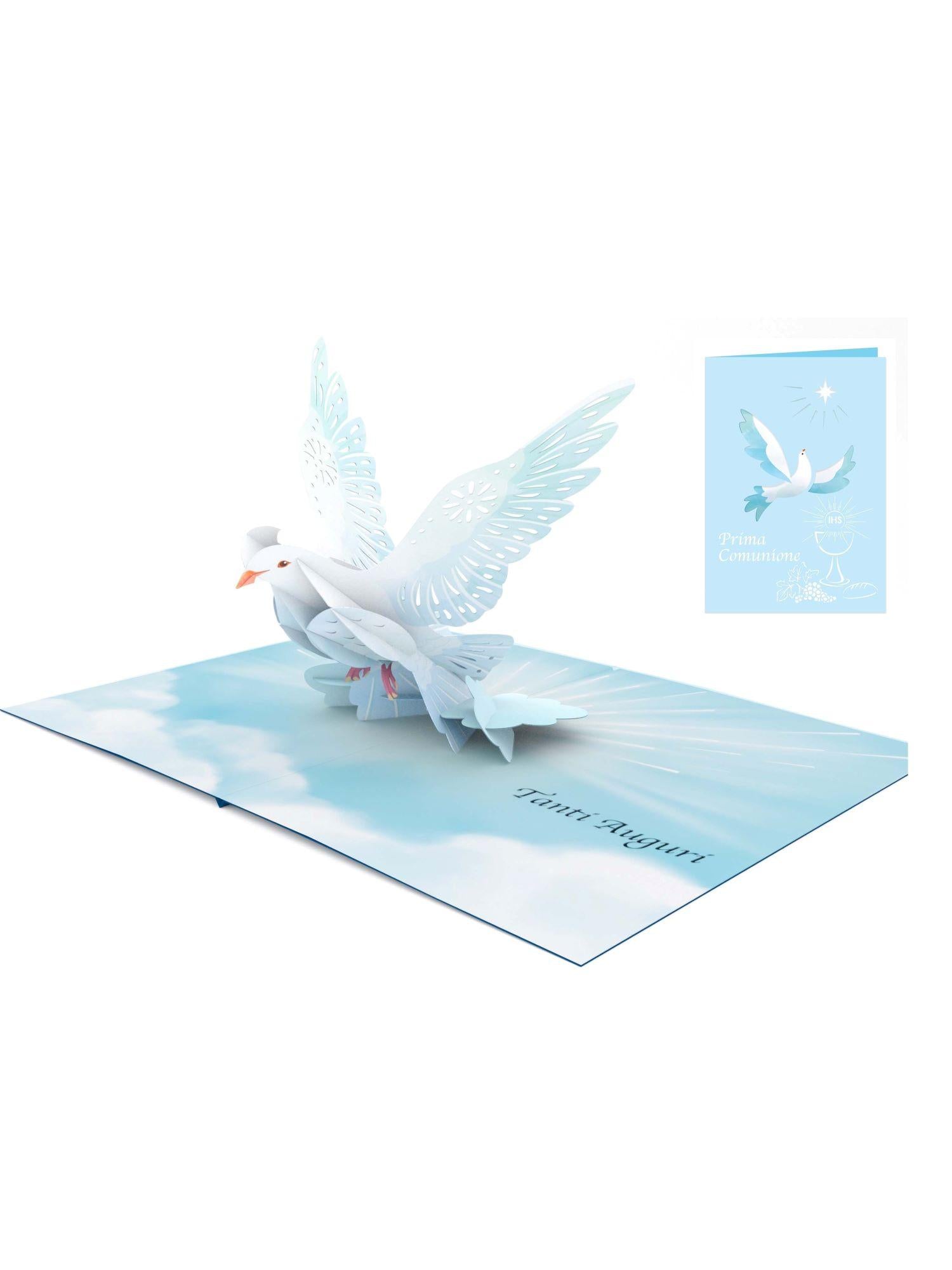 Origamo biglietto di auguri pop up Prima Comunione con colomba